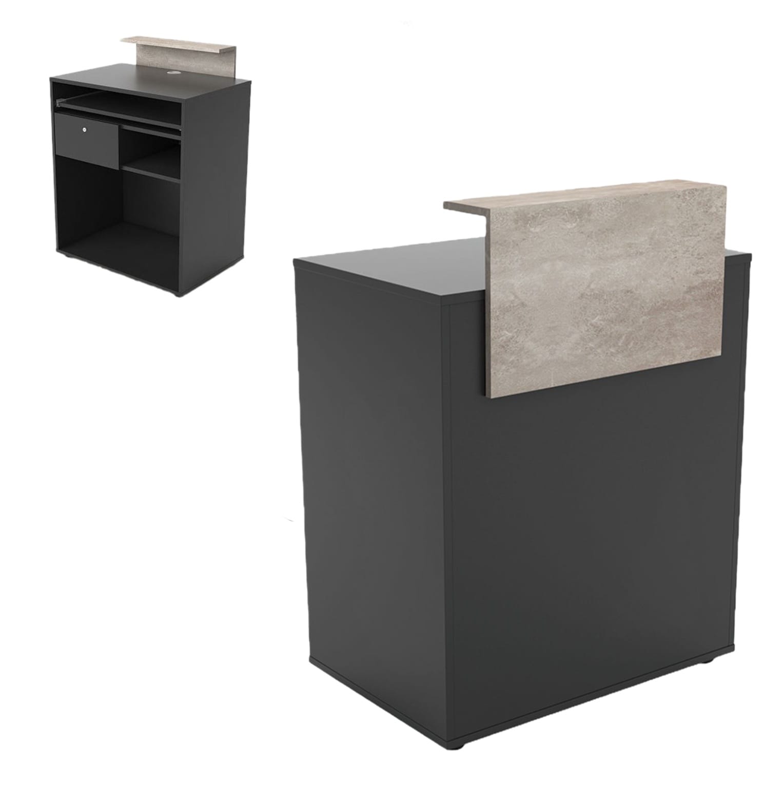 Tablette coulissante, tiroir verrouillable, espace de rangement